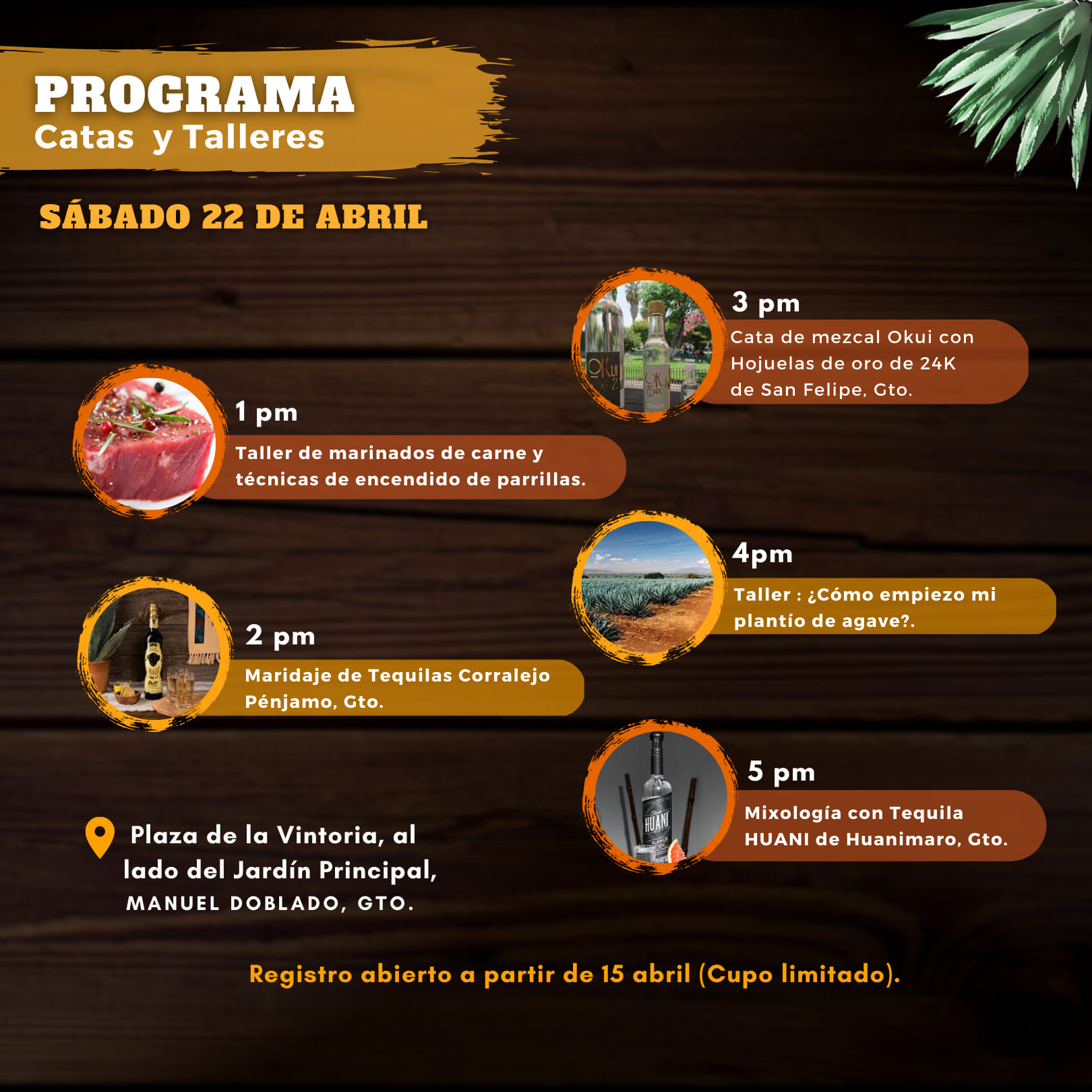 10 parrilleros locales e invitados deleitarán con su gran sazón Grill que se podrá maridar con variedad de destilados diversos del Estado de Guanajuato y Jalisco y además de productores artesanales locales e invitados. La cita es en el jardín principal de Manuel Doblado, Gto. el 22 de abril de 11am a 7pm.
